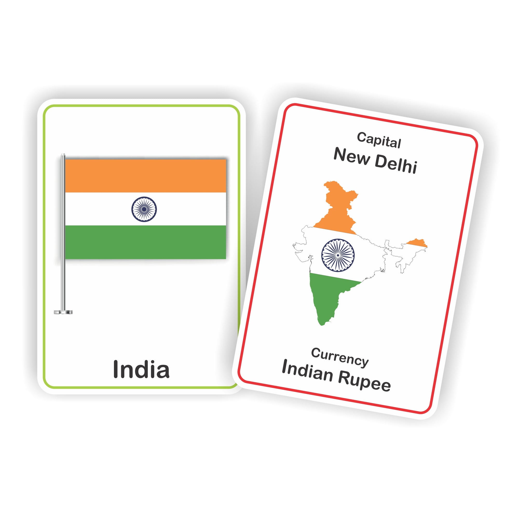 This set of large, double-sided flashcards introduces children to the flags, capitals, currencies, and country outlines of 32 different nations. Each card features bright, colorful visuals designed to spark curiosity and build early geography skills.